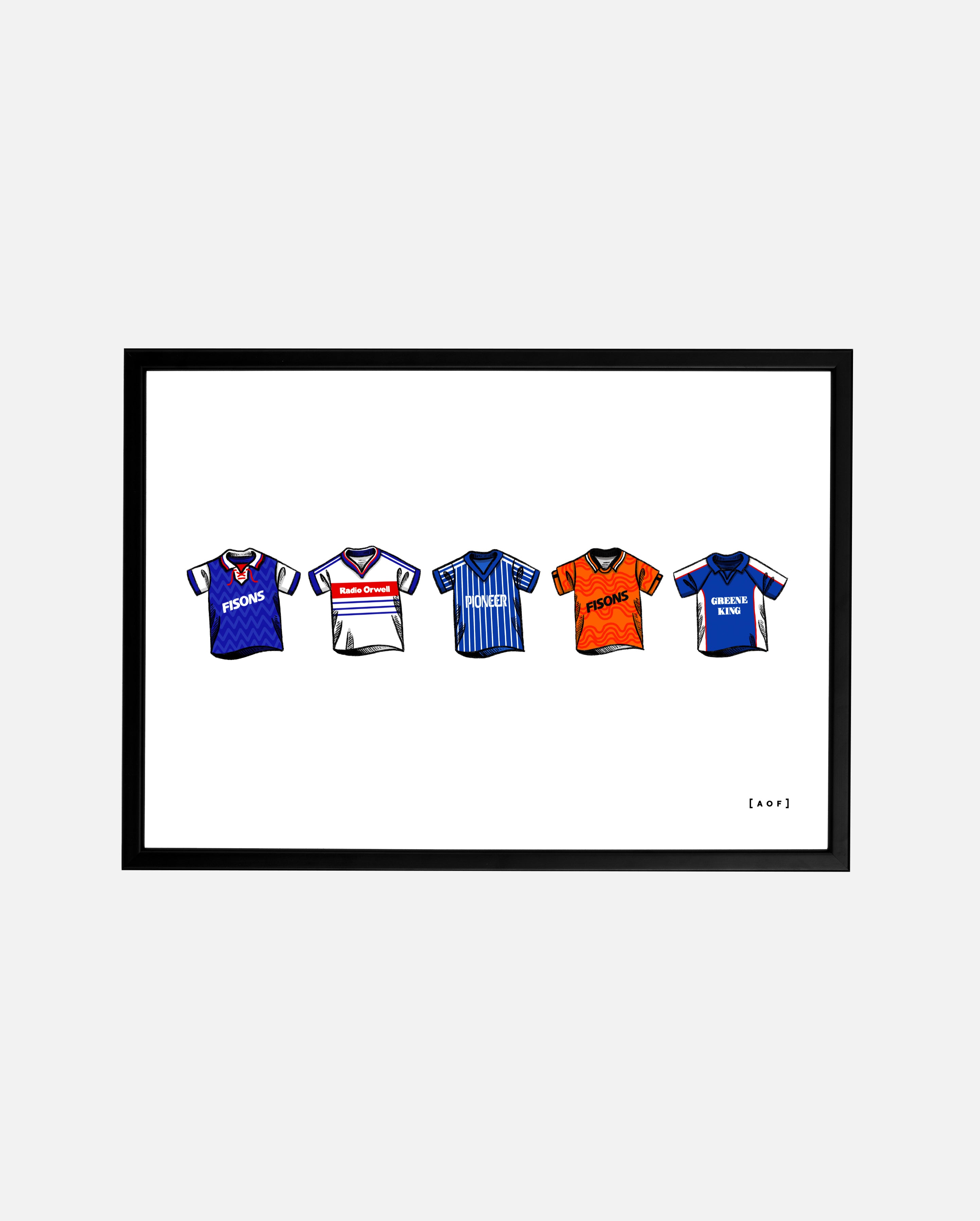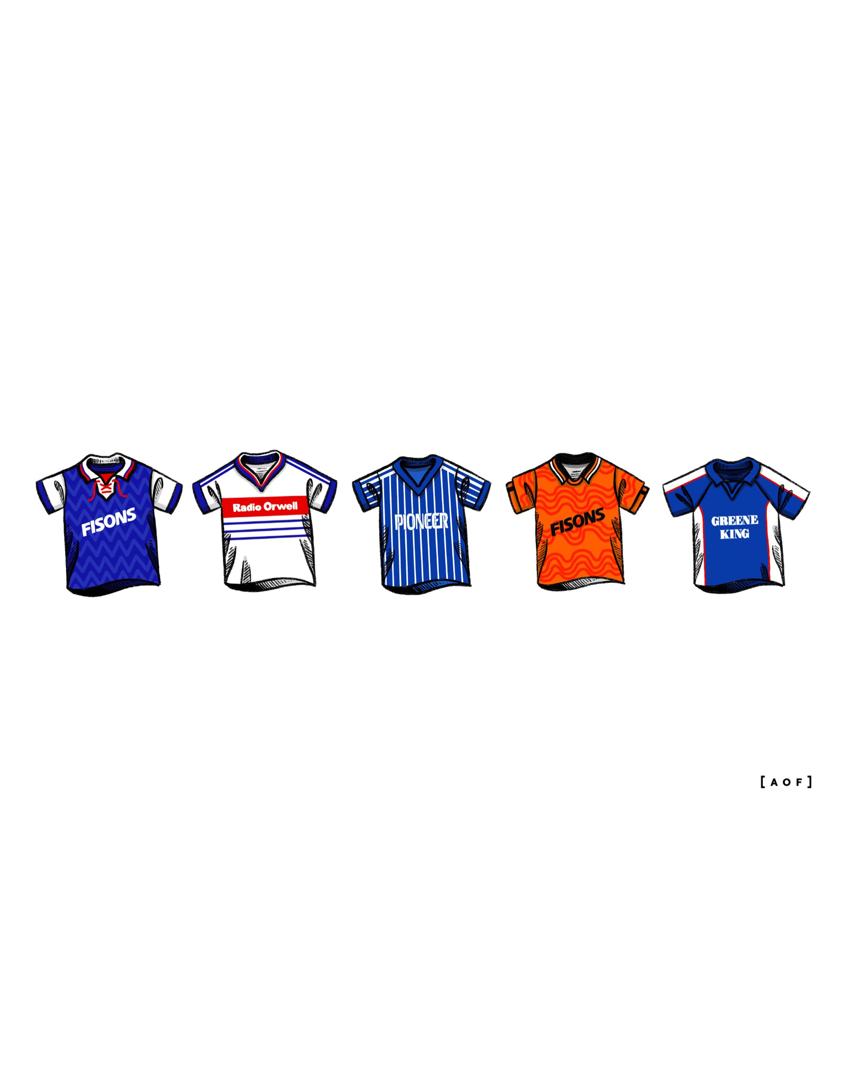 • Design: A collection of classic football shirts.